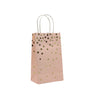 Diese hochwertigen Geschenkpapier-Tüten in elegantem Rosa-Gold-Design sind die perfekte Verpackung für kleine bis mittelgroße Geschenke. Hergestellt aus robustem 120 g Kraftpapier bieten sie eine hervorragende Stabilität und eine angenehme Tragkraft. Die dekorativen Goldfolien-Punkte verleihen den Tüten eine festliche, edle Optik. Dank der runden, verstärkten Innenhenkel lassen sich die Tüten bequem tragen, während Boden- und Seitenfalten das Befüllen besonders einfach machen. Die Tüten sind langlebig, wiederverwendbar und vielseitig einsetzbar, von Weihnachten über Geburtstage bis hin zu Hochzeiten oder Partys.